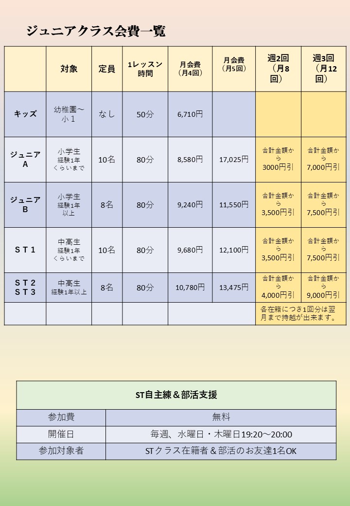 ジュニアのやる気を引き出すレベル分けシステムを採用! 細かいレベルに応じてレッスンを行います。